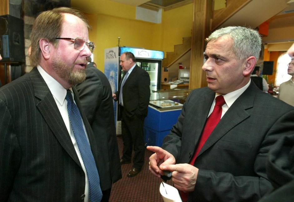 Nagip Arifi (right), Mayor of Bujanovac, talks with Ambassador Hans Ola Urstad, Head of OSCE Mission to Serbia, at the closing ceremony of a bar exam training course organized by OSCE and the Belgrade-based Projuris Organization, Bujanovac, 21 March 2007.