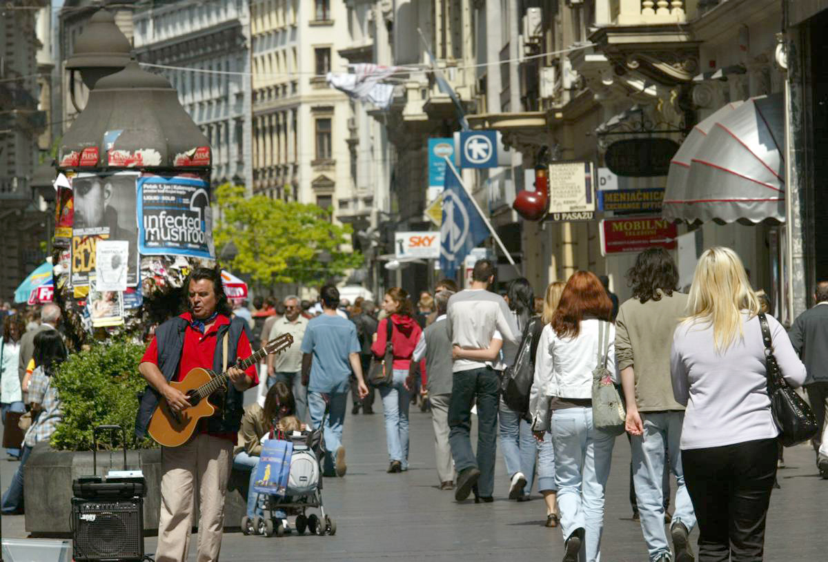 Knez Mihajlova street in Belgrade, a major pedestrian and shopping street in the Serbian capital, 30 April 2007.