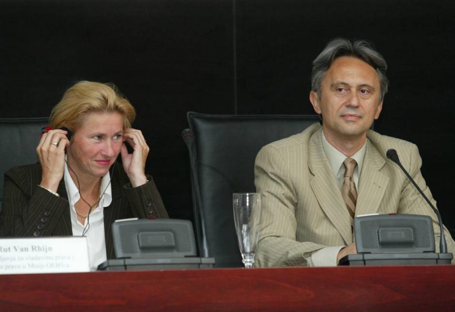 Ruth van Rhijn (left), Head of the Mission's Rule of Law and Human Rights Department, and Sinisa Vazic, President of the Belgrade District Court, at a conference on Serbia's new Criminal Procedure Code, Belgrade, 11 May 2007.