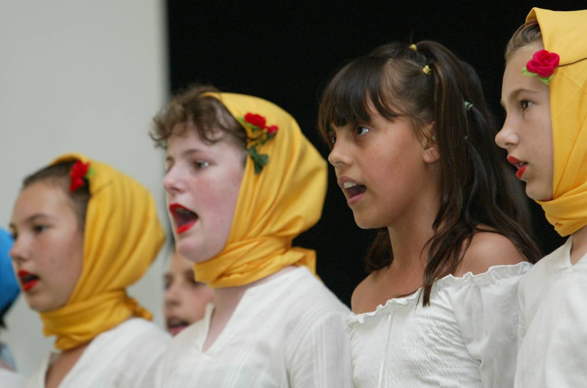 Children at an elementary school in Silbas, Vojvodina, sing at a "school day" ceremony, 25 May 2007. The OSCE Mission to Serbia is helping to provide textbooks on subjects such as literature, math, music and English for 50 Roma students.
