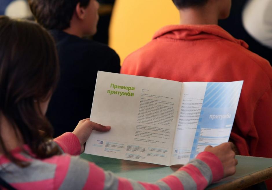A young student examines literature from the Serbian Ombudsman's Office on the rights of children and youth, during a project supported by the OSCE Mission to Serbia, Trstenik, 22 September 2010.