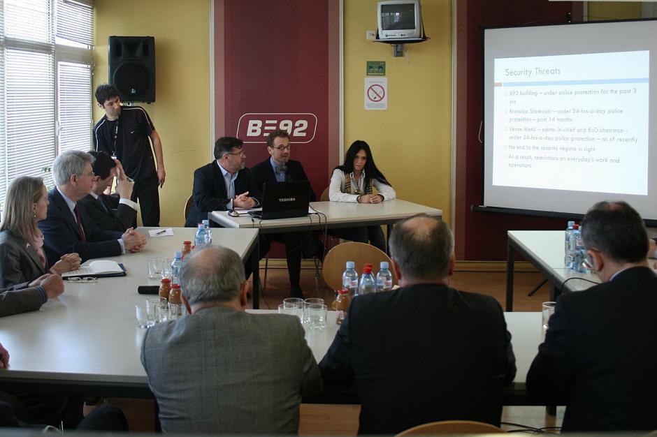 OSCE Ambassador Kypreos visits B92 together with a group of 15 ambassadors to condemn threats against the TV station's investigative reporters, Belgrade, 8 March 2011.