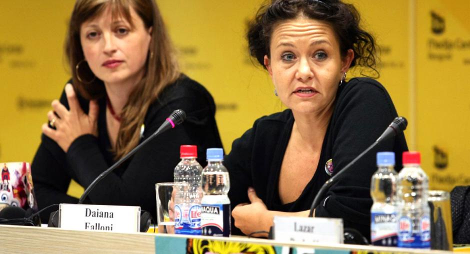 Maja Micic (l) and Daiana Falloni, Head of Democratization Department of the OSCE Mission to Serbia, present Take Action, a television documentary on civic activism produced with support from the OSCE Mission to Serbia, Belgrade, 2 November 2010. (OSCE/Ana Dokucevic)