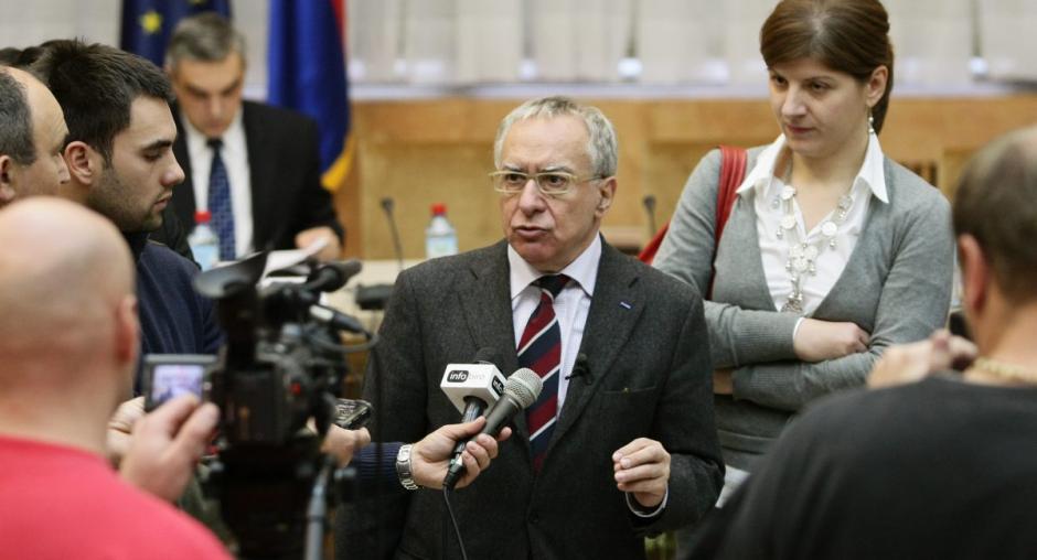 Dimitrios Kypreos, Head of the OSCE Mission to Serbia, speaking to journalists at a meeting on the forthcoming national minority councils election, Belgrade, 30 October 2009. (OSCE/Milan Obradovic)