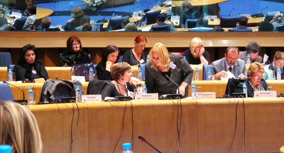 Two women MPs from the Serbian National Assembly participate in the second OSCE Regional Conference of Women Parliamentarians, which took place on 15-16 October in Sarajevo, hosted by the OSCE Mission to Bosnia and Herzegovina. (OSCE/Gisbert vonHaugwitz)