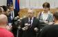 The Deputy Head of the OSCE Mission to Serbia, Thomas Moore (l) and the Director of the Basic Police Training School, Biljana Puskar, speak after welcoming a group of young men and women, south Serbian Albanians, interested in joining the police service, to the Basic Police Training Centre in Sremska Kamenica, 25 November 2011. (OSCE/Milan Obradovic)