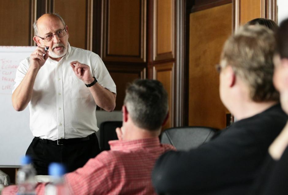 T-Media Director Rick Thompson talks to Radio Novi Sad correspondents and journalists during a workshop for radio journalists aiming to develop journalists’ skills needed in news reporting. Novi Sad, 20 April 2011.