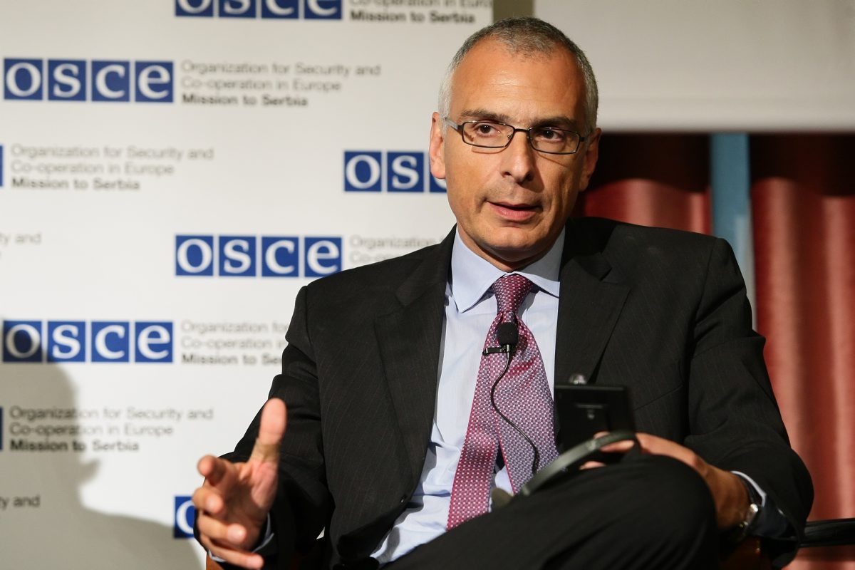 Stefano Sannino, Deputy Director-General of the Directorate-General for Enlargement, EU Commission, speaks during a conference on the OSCE Mission to Serbia's 10th anniversary, Belgrade, 16 May 2011.
