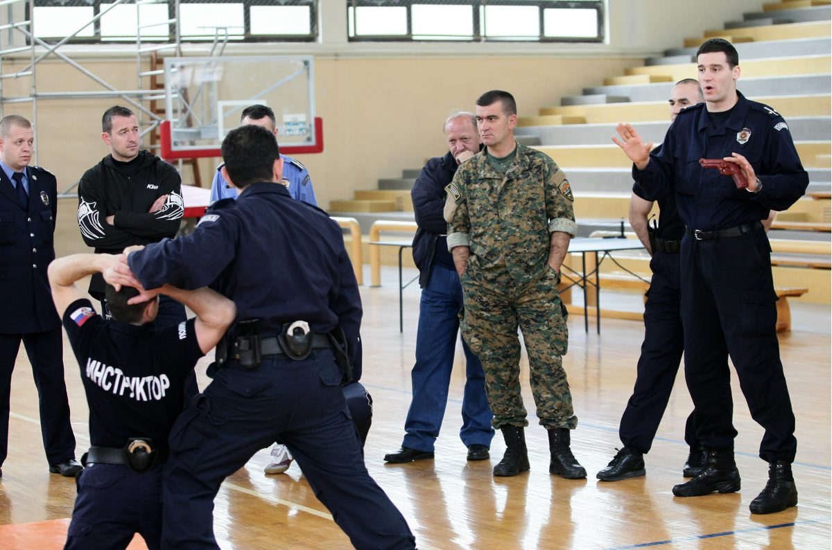 Participants of the OSCE-supported a regional seminar on the practical aspects of teaching the use of force without firearms, learn new skills at the Ministry of Interior’s Basic Police Training Centre, Sremska Kamenica, 11 April 2011.