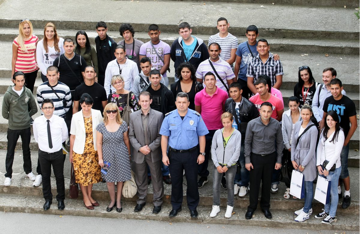 A group of prospective Roma applicants during an orientation visit to the Basic Police Training Centre in Sremska Kamenica, 8 September 2011.