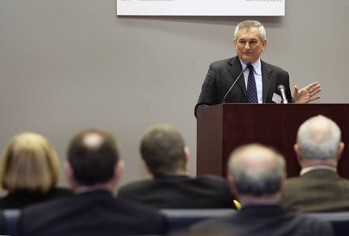 Vladimir Bilandzic, Special Advisor on Confidence and Security Building Measures (CSBM) addresses a conference in Belgrade to mark the 30th anniversary of the 1977-78 CSCE Follow-up Meeting, 8 March 2008.