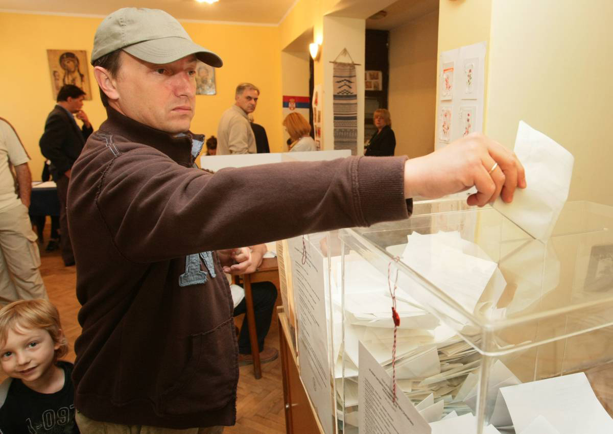 A voter casts his ballot during the parliamentary elections in Serbia, Belgrade, 11 May 2008.
