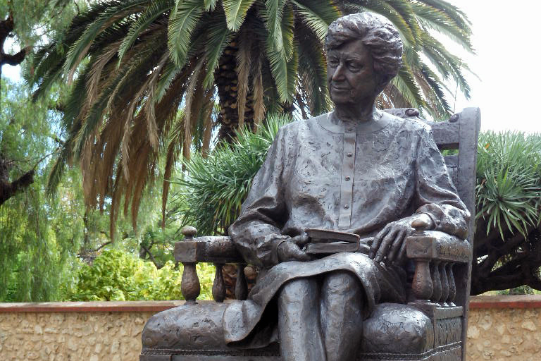 A statue of Dame Roma Mitchell, the first Australian woman to be a judge, a Queen's Counsel, Chancellor of an Australian University and the Governor of an Australian State, Adelaide, 25 April 2012.
