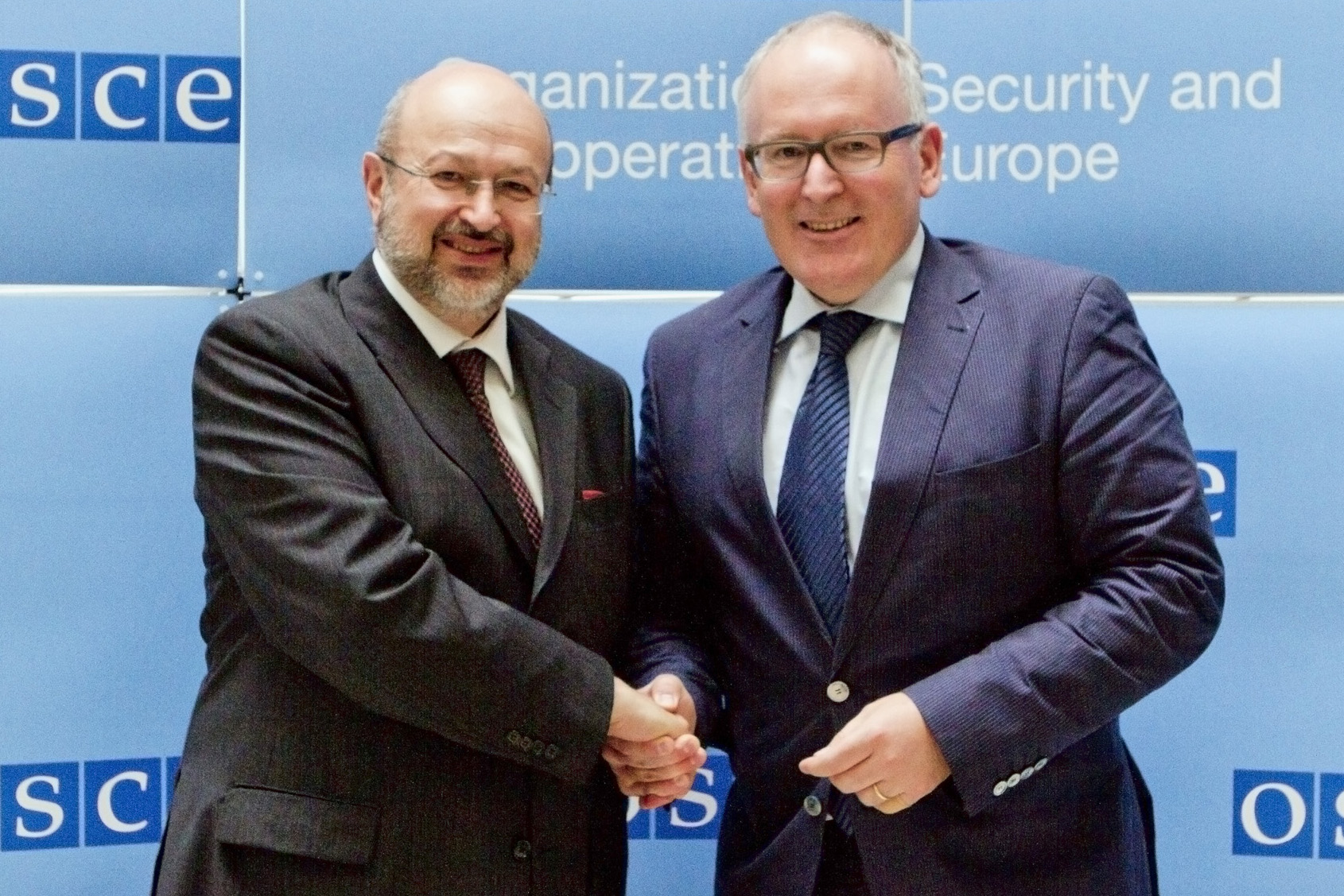 OSCE Secretary General Lamberto Zannier greets Dutch Foreign Minister Frans Timmermans, Vienna, 1 July 2013.