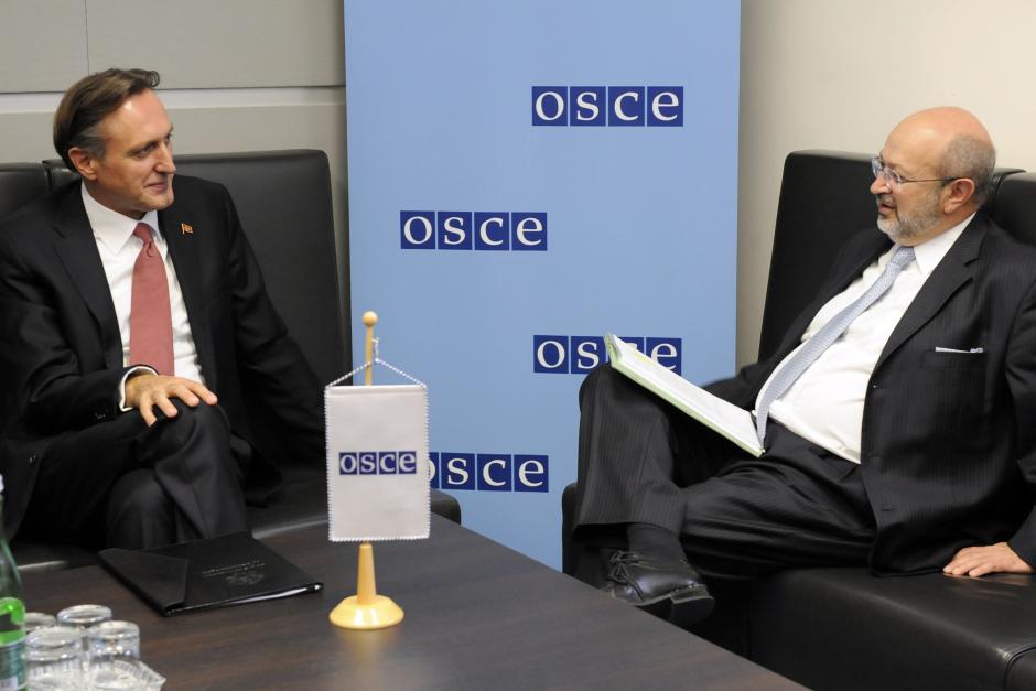 OSCE Secretary General Lamberto Zannier (r) and OSCE Parliamentary Assembly President Ranko Krivokapic, Vienna, 31 October 2013.