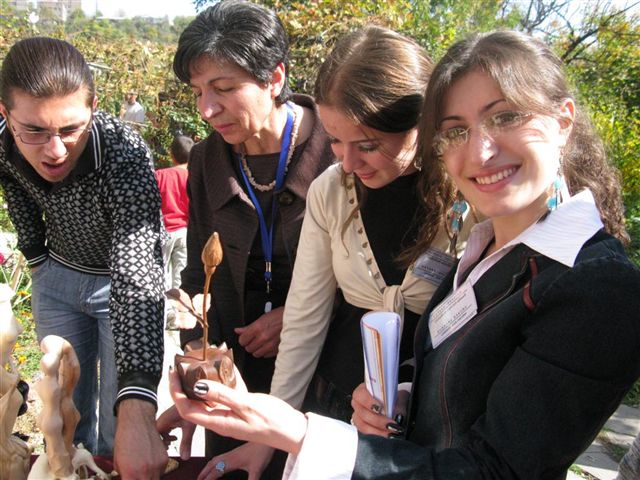Interested customers inspect products at the trade fair organized by women's resource centres in Goris, Syunik, Armenia, on 17 October 2009.