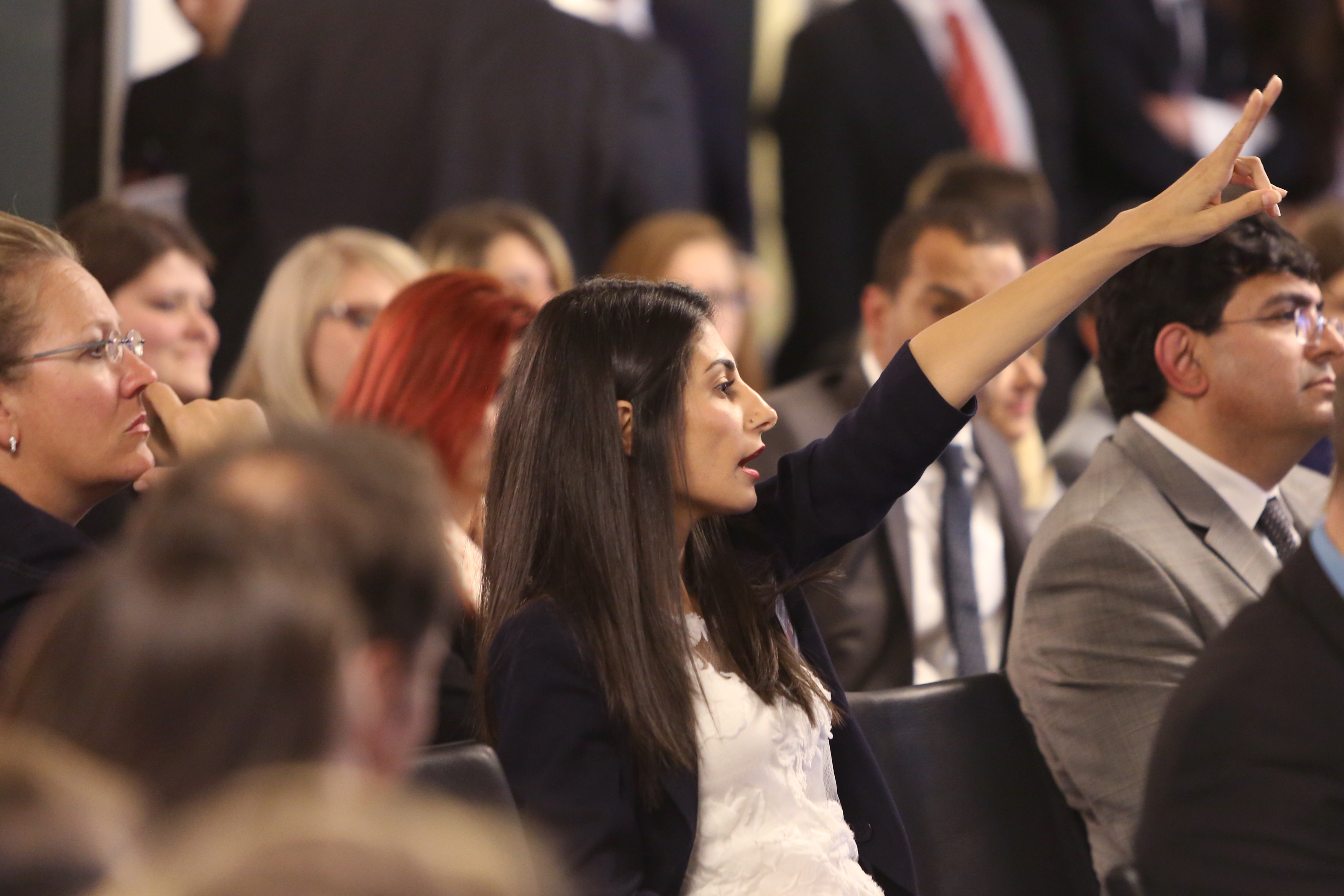 Participant posing a question to the panel at the OSCE Security Days 2015, Vienna, 21 May 2015.