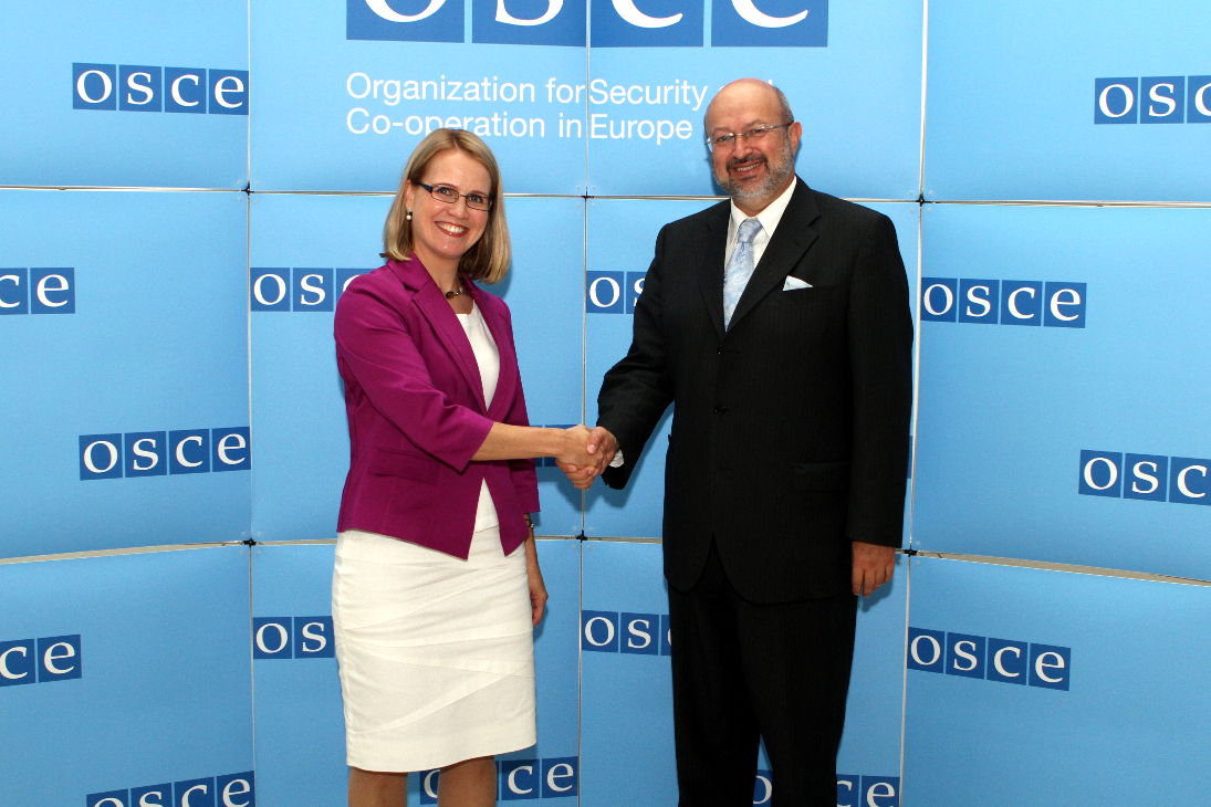 H.E. Ambassador Katja Pehrman (l), Permanent Delegation of Finland to the OSCE, and the OSCE Secretary General Lamberto Zannier, Vienna, 3 September 2013.