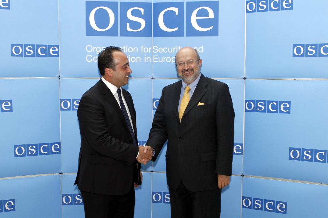 H.E. Keith Azzopardi (l), Delegation of Malta to the OSCE, and the OSCE Secretary General Lamberto Zannier, Vienna, 4 September 2013.