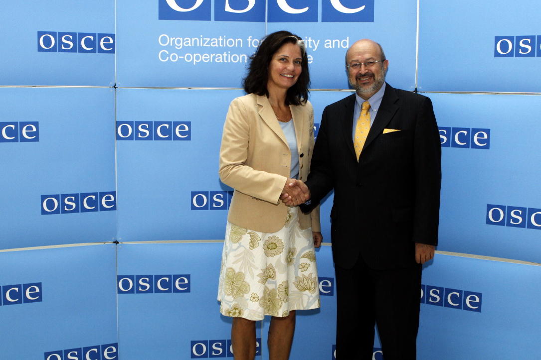 H.E. Liselotte Plesner (l), Embassy and Permanent Mission of Denmark, and the OSCE Secretary General Lamberto Zannier, Vienna, 4 September 2013.