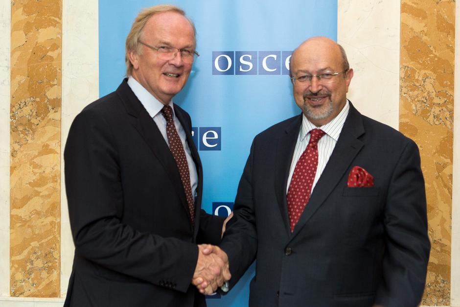 H. E. Ambassador Eberhard Pohl (l), Permanent Mission of Germany to the OSCE in Vienna, and the OSCE Secretary General Lamberto Zannier, Vienna, 3 September 2015.