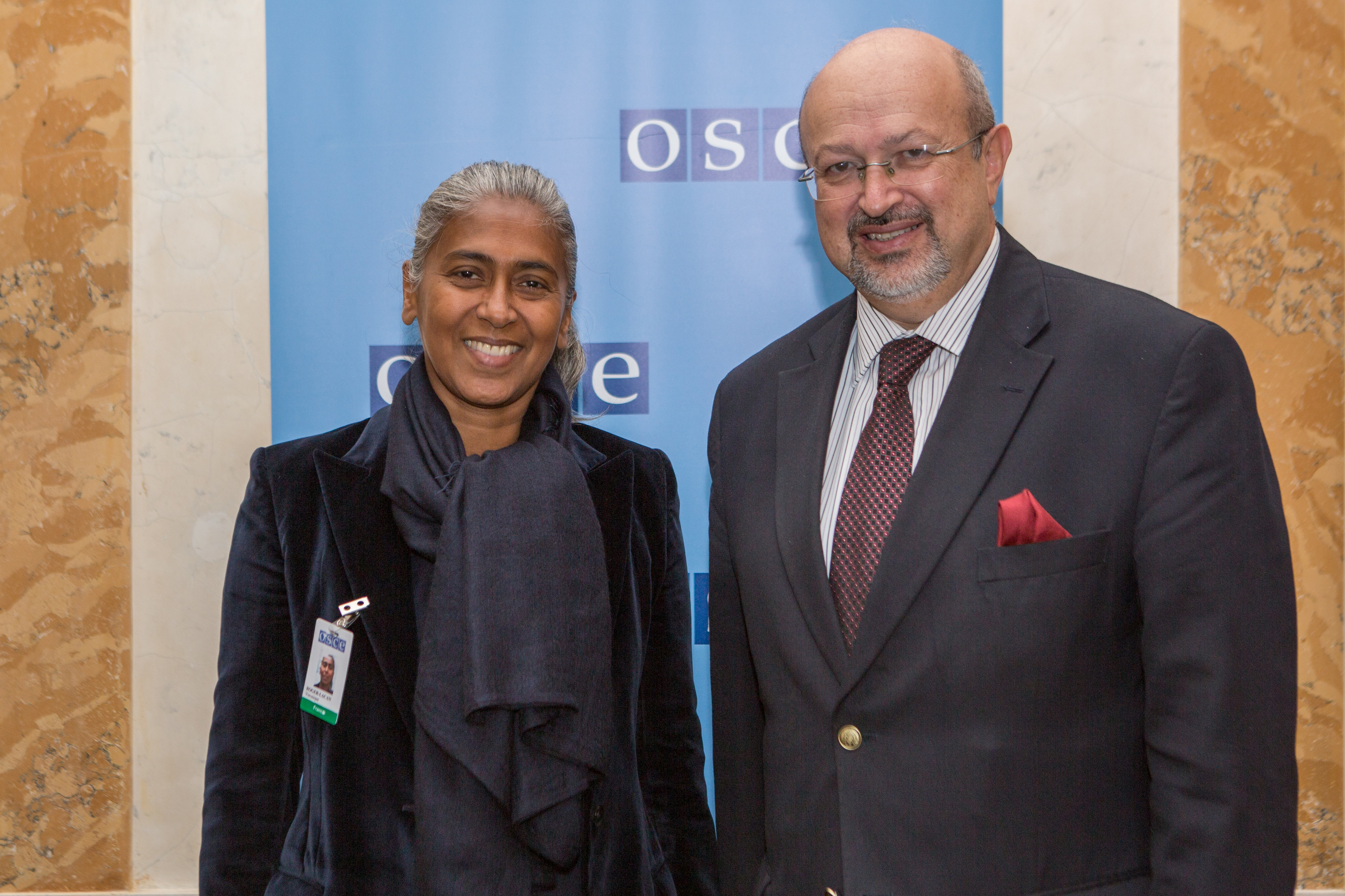 H.E. Ambassador Véronique Roger-Lacan (l), Permanent Mission of France to the OSCE in Vienna, and the OSCE Secretary General Lamberto Zannier, Vienna, 8 September 2015.