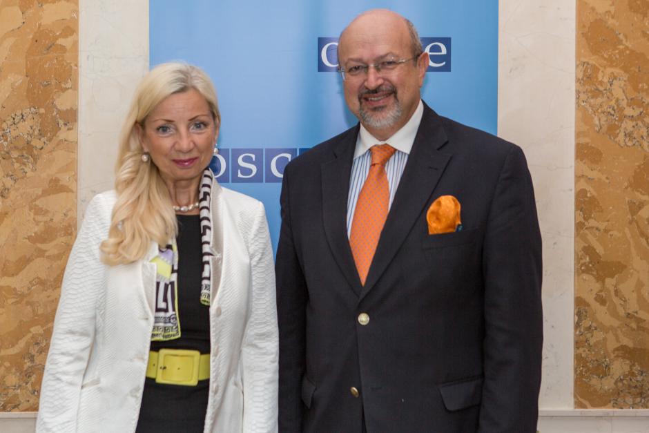 H.E. Ambassador Eve-Külli Kala (l), Permanent Delegation of Estonia to the OSCE in Vienna, and the OSCE Secretary General Lamberto Zannier, Vienna, 4 September 2015.