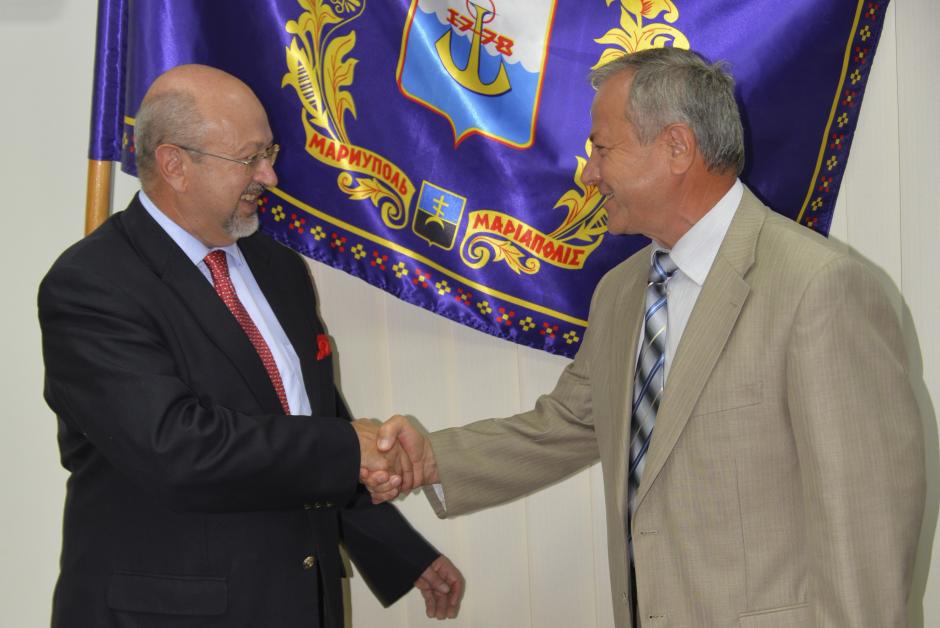 OSCE Secretary General Lamberto Zannier meeting Mariupol Mayor Yuriy Khotlubey, 10 September 2015