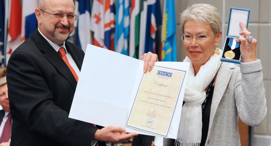 2015 OSCE Medal awarded to Ambassador Heidi Tagliavini and former OSCE Senior Operational Adviser John Crosby
