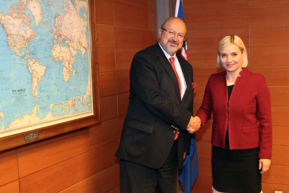 Secretary General Lamberto Zannier and Minister for Foreign Affairs, External Trade, Defence and International Development of Iceland Lilja Alfredsdottir in Reykjavik, on 11 October 2016.