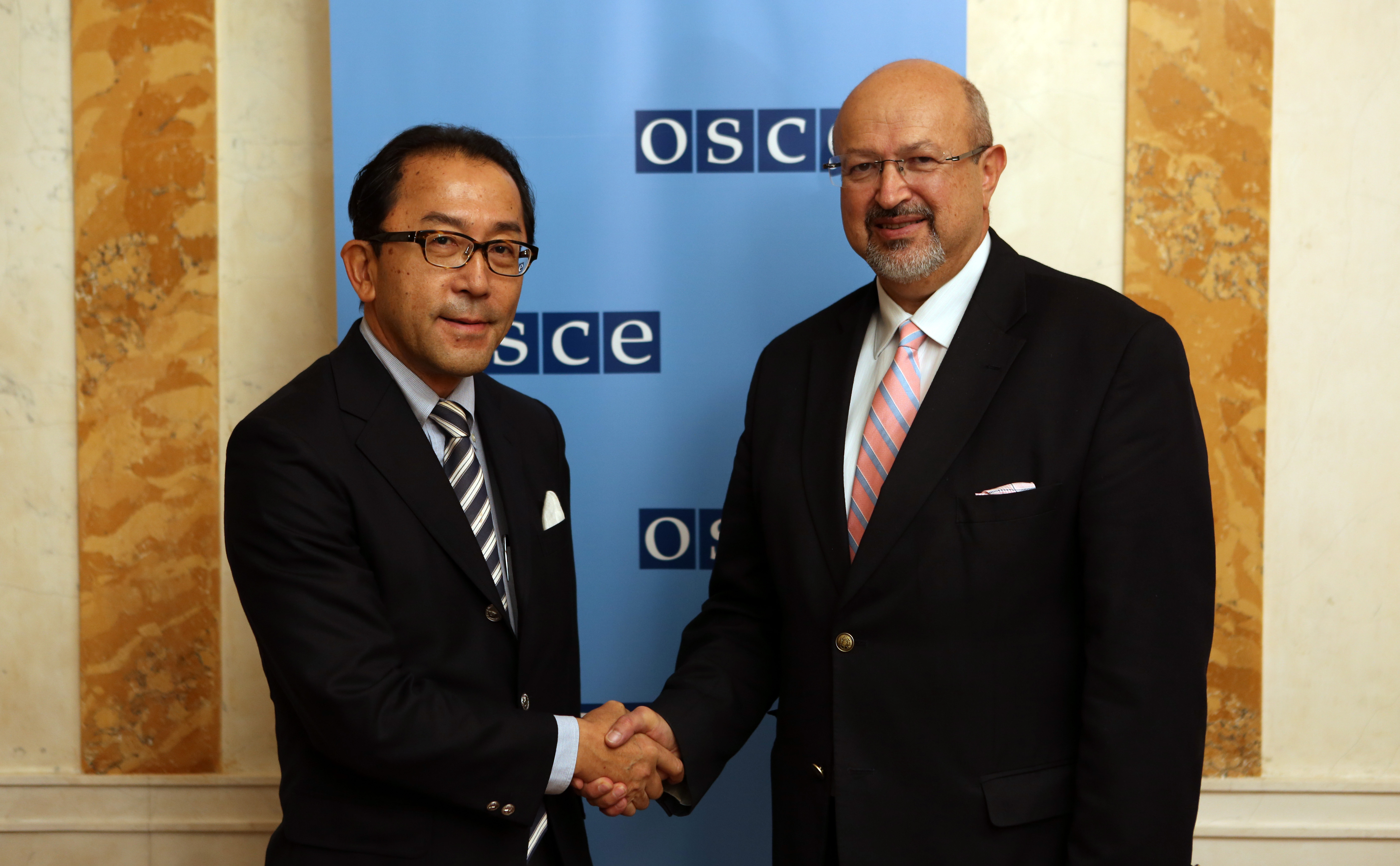 H.E. Ambassador Kiyoshi Koinuma (l), Permanent Mission of Japan to the OSCE, with OSCE Secretary General Lamberto Zannier, Vienna, 19 October 2016.