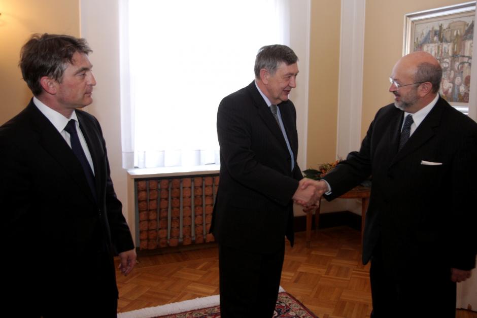 OSCE Secretary General Lamberto Zannier (r) meets members of the Presidency of Bosnia and Herzegovina Nebojša Radmanović (c) and Željko Komsić, Sarajevo, 20 March 2012.