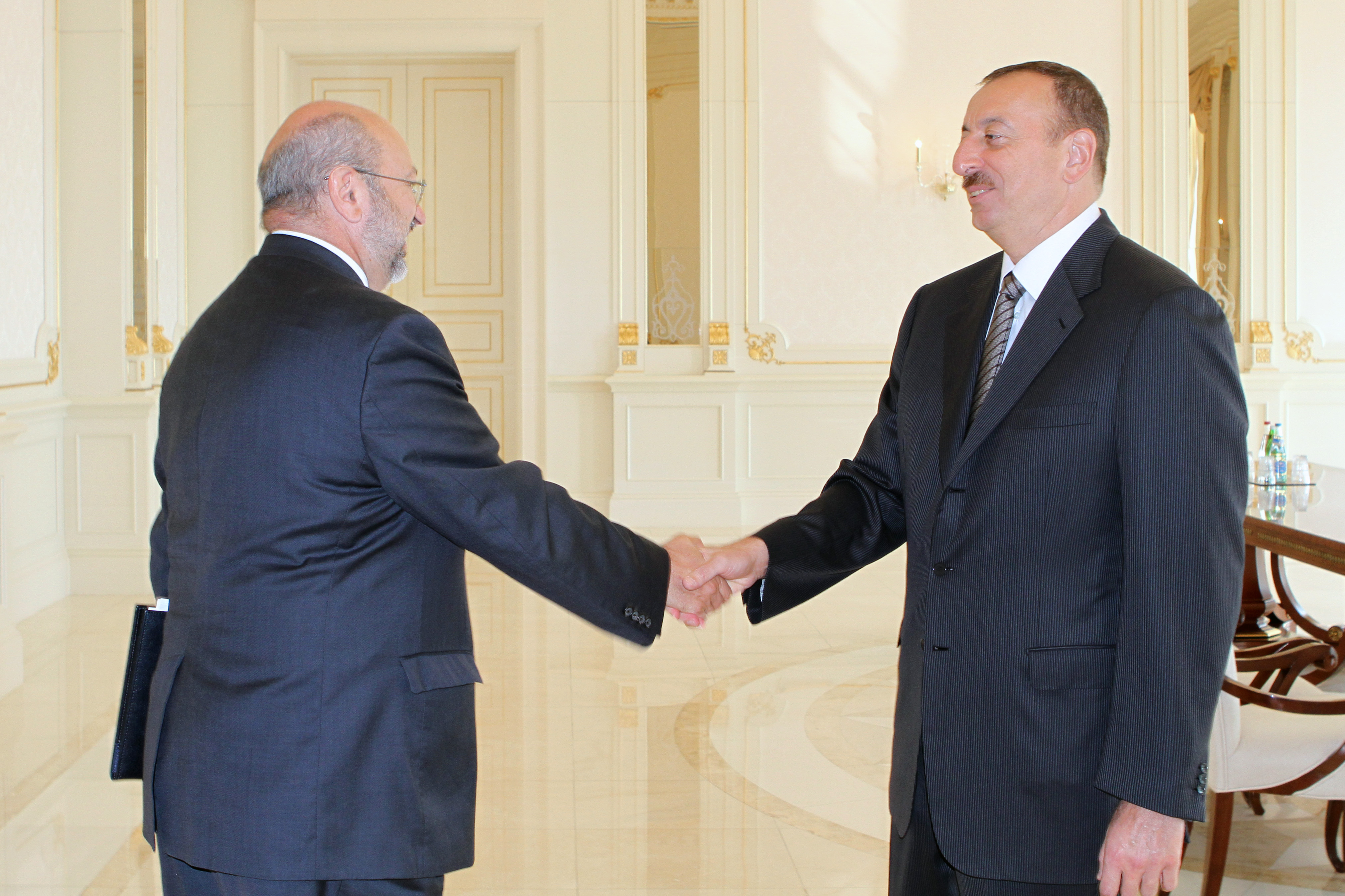 OSCE Secretary General Lamberto Zannier (l) meeting President of Azerbaijan Ilham Aliyev, Baku, 9 July 2012.