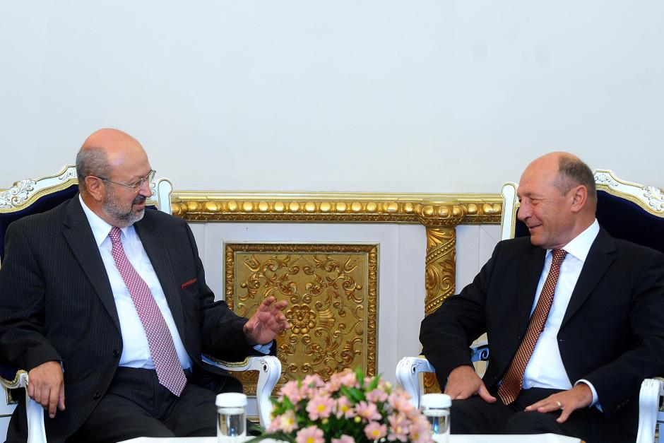 OSCE Secretary General Lamberto Zannier (l) with the Romanian President Traian Basescu during his visit to Bucharest, 4 September 2012.