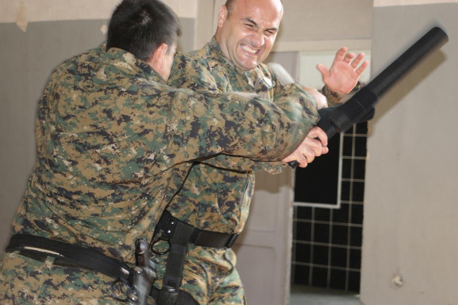 Police officers demonstrate the skills they learned during OSCE-supported training on the use of police batons, Skopje, 17 May 2013.
