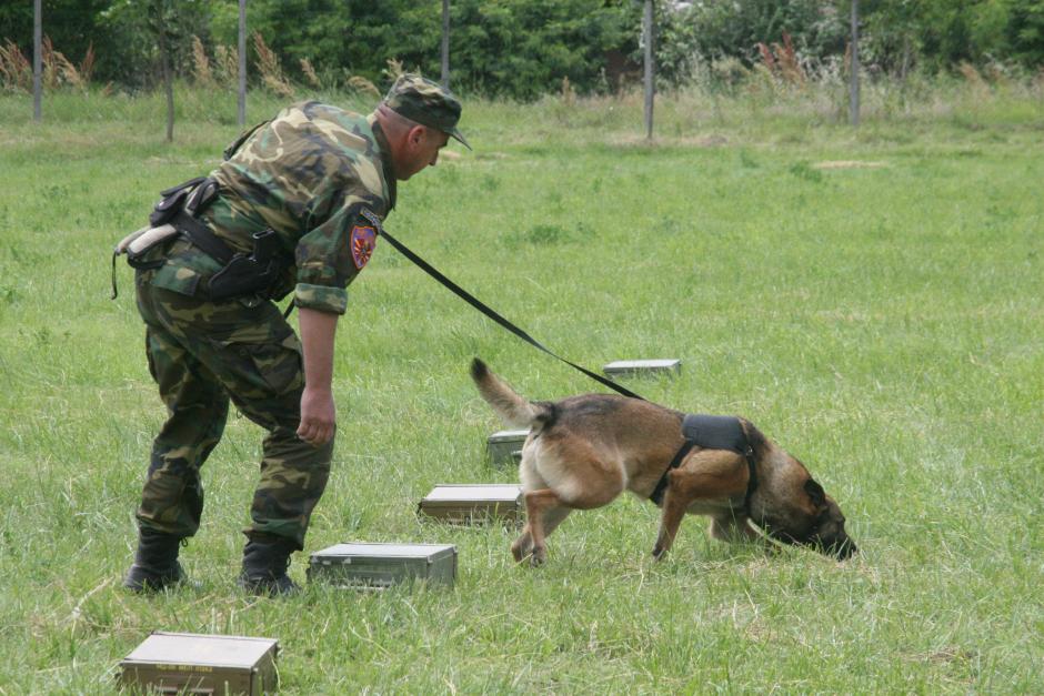 A police officer from a K9 unit in Skopje takes part in an OSCE-organized training program on conducting drug searches, 31 May 2013.