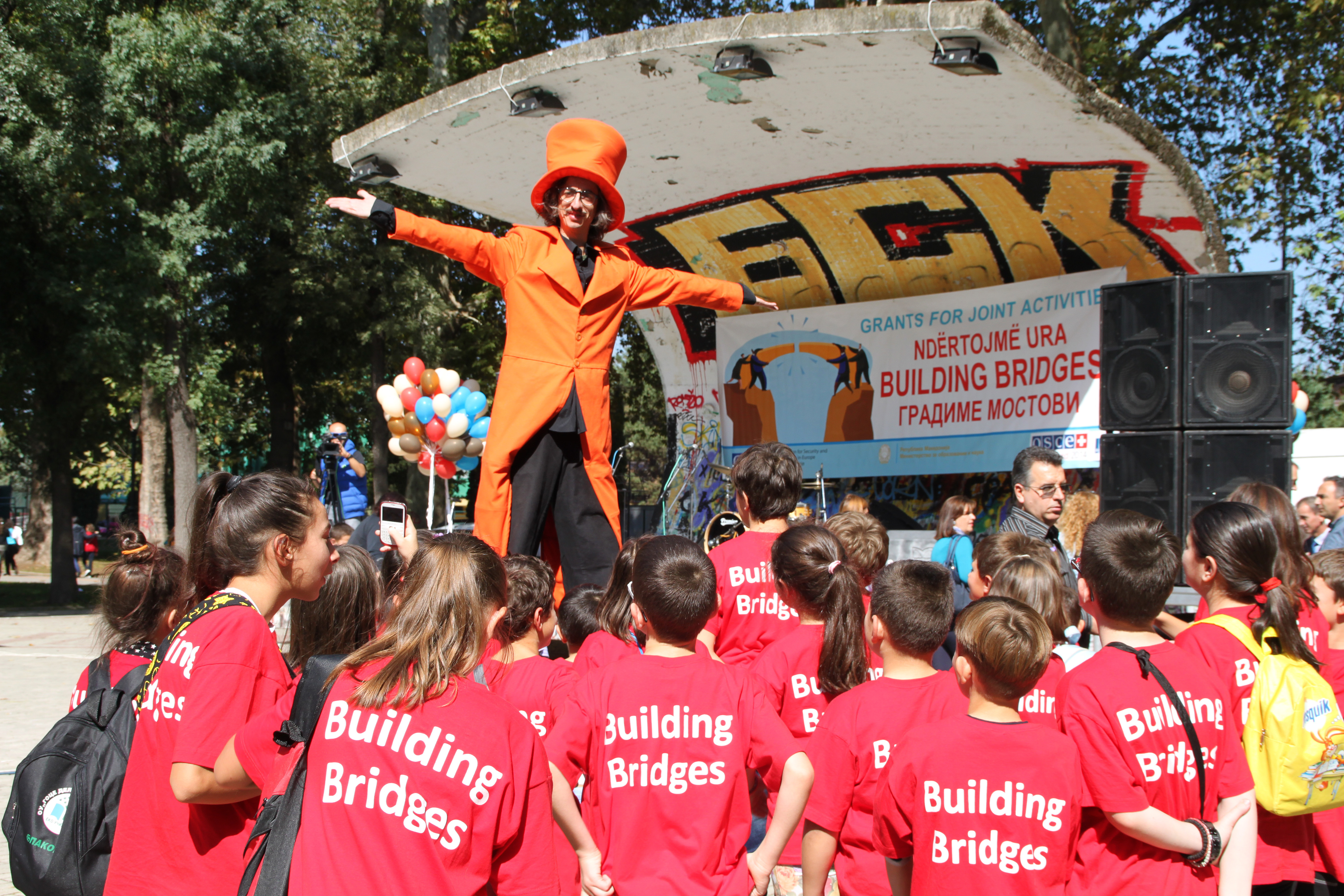 Students watch a performance during the OSCE-supported Building Bridges Fund event, Skopje, 3 October 2015.
