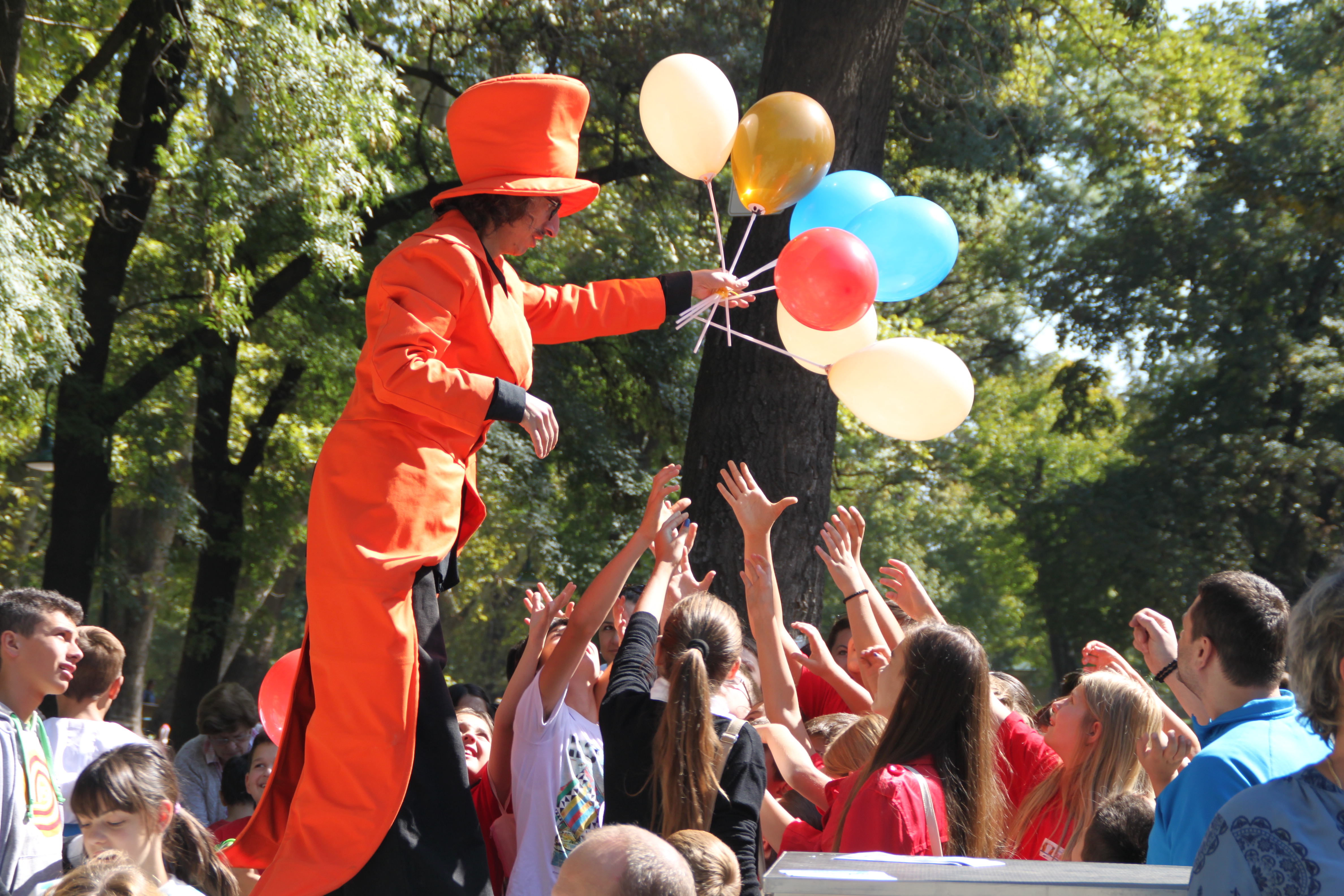 Students watch a performance during the OSCE-supported Building Bridges Fund event, Skopje, 3 October 2015
