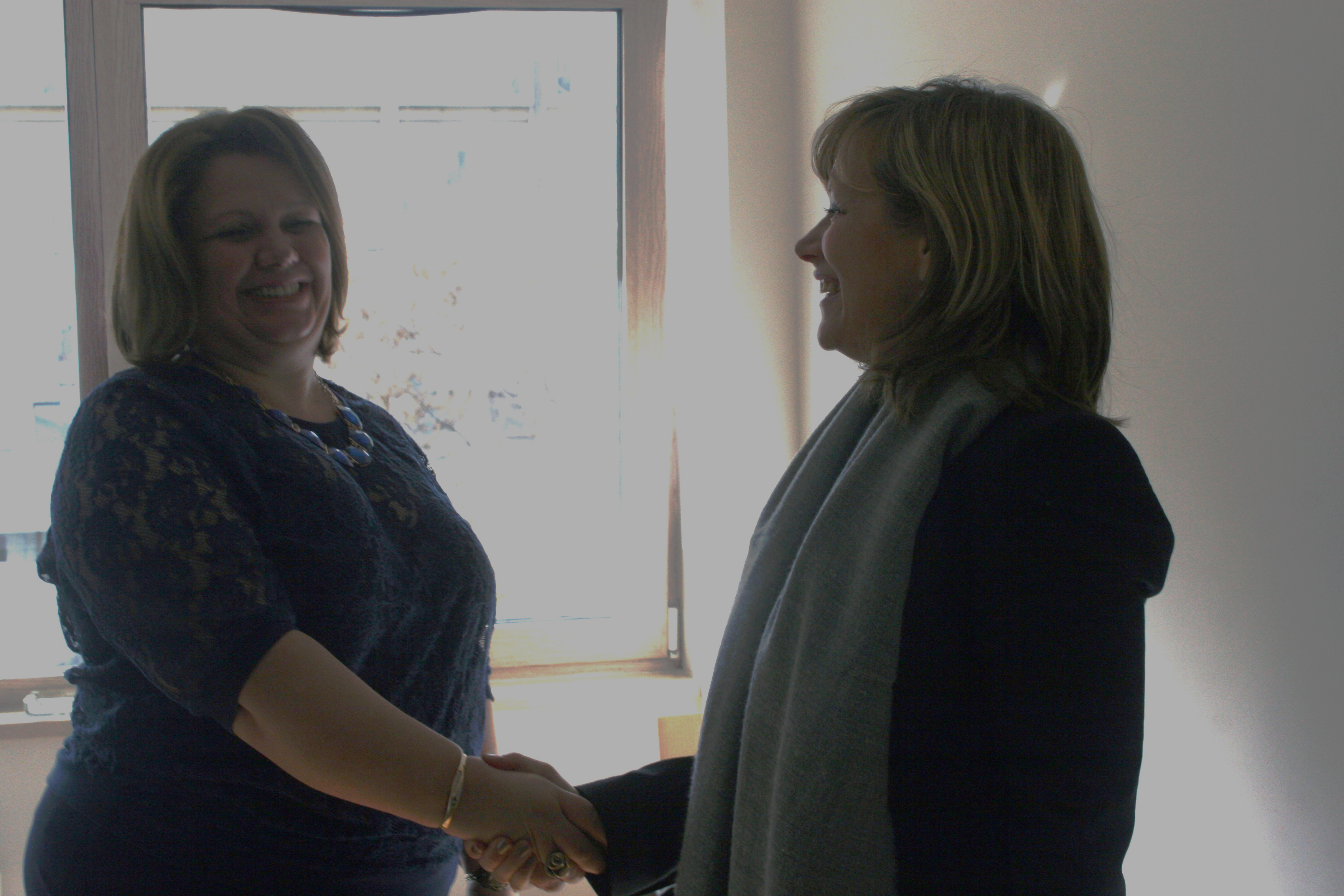Head of the OSCE Mission to Skopje Nina Suomalainen (r) meets the Prosecutor for Cases Surrounding and Arising from the Content of the Unauthorized Interception of Communications Katica Janeva (l), Skopje, 10 November 2015.