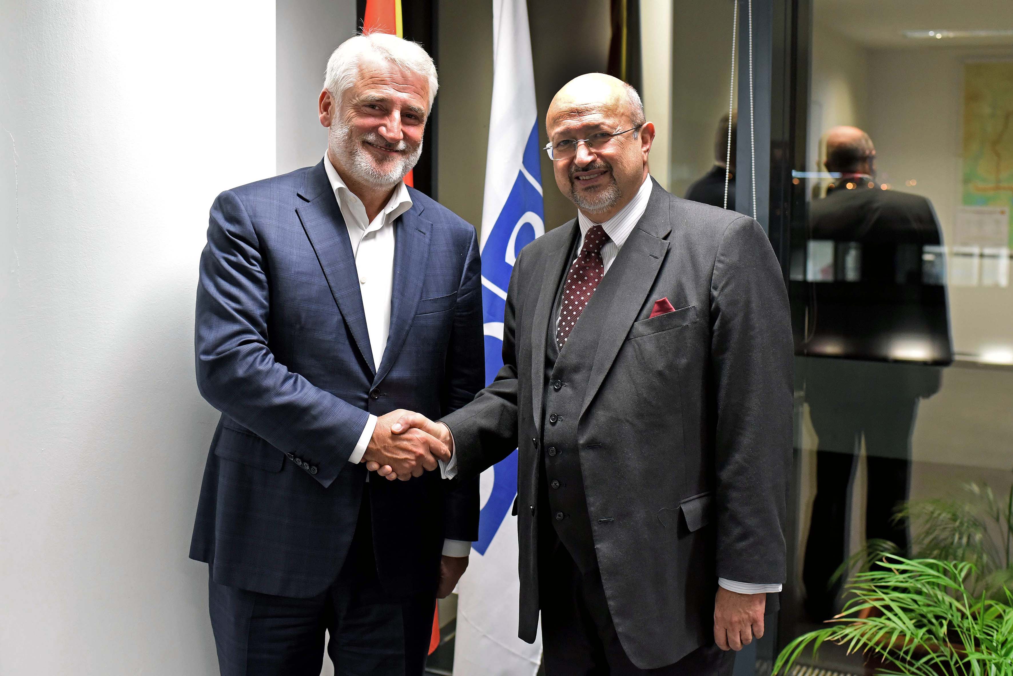 OSCE Secretary General Lamberto Zannier (r) shaking hand with the DPA leader Menduh Thachi (l), during his visit to Skopje, 30 November 2015.
