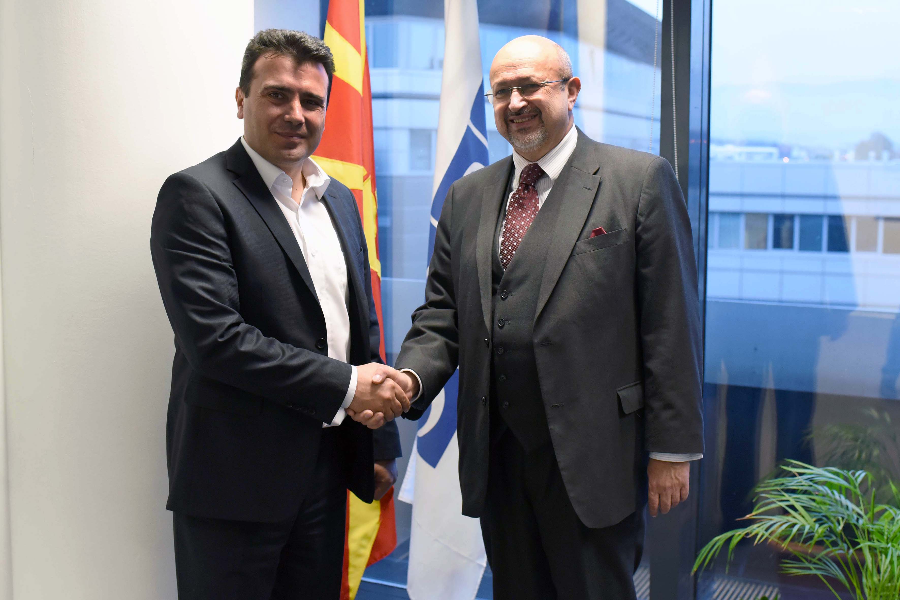 OSCE Secretary General Lamberto Zannier (r) shaking hand with the SDSM leader Zoran Zaev (l), during his visit to Skopje, 30 November 2015.