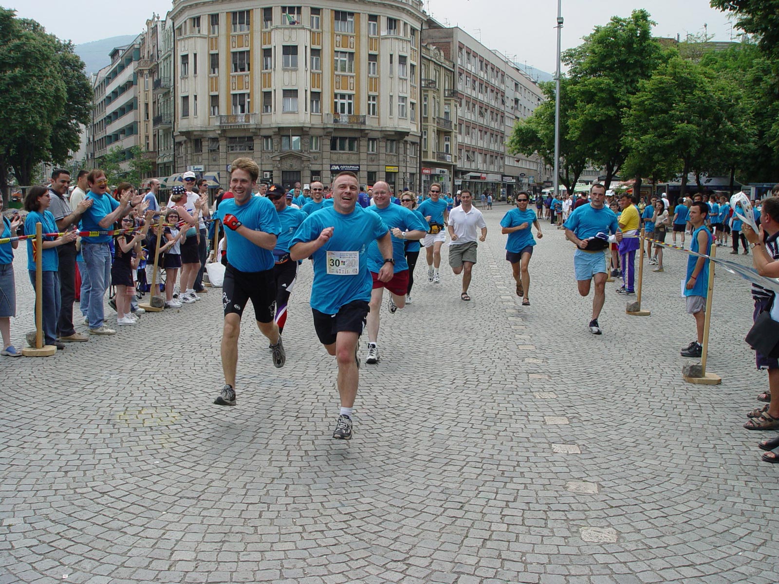 Ambassador Craig Jenness, Head of the OSCE's mission in Skopje, finishes the seventh "Blossom Run" marathon connecting Tetovo and Skopje, 18 May 2003.