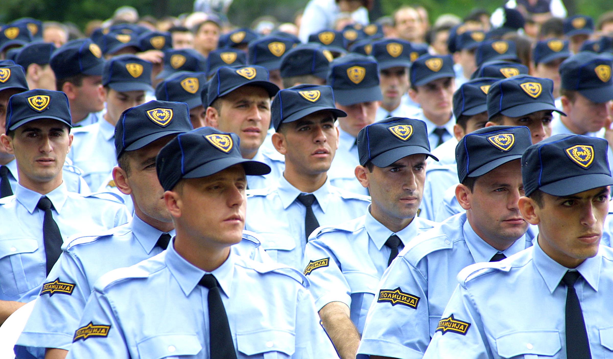Graduation of multi-ethnic police cadets from the Macedonian police school in Idrizovo, 29 July 2002.