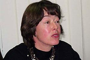 Dutch Ambassador to Skopje, Frederique de Man, talks to journalists at the launch of an OSCE-Interior Ministry media campaign to promote community based policing, 22 March 2004.