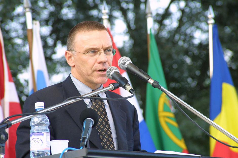 Ambassador Craig Jenness, Head of the OSCE Spillover Monitor Mission to Skopje, addresses the 350 police cadets who finished a three-month training course on 30 July 2003.