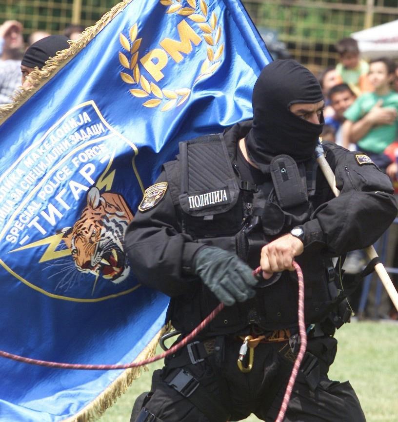 Performance of the Skopje-based special police unit at the Veles Police Open Day included helicopter over-flight and rope descending. The OSCE Mission supports Police Open Days, designed to improve relations between citizens and the police, 30 May 2004.