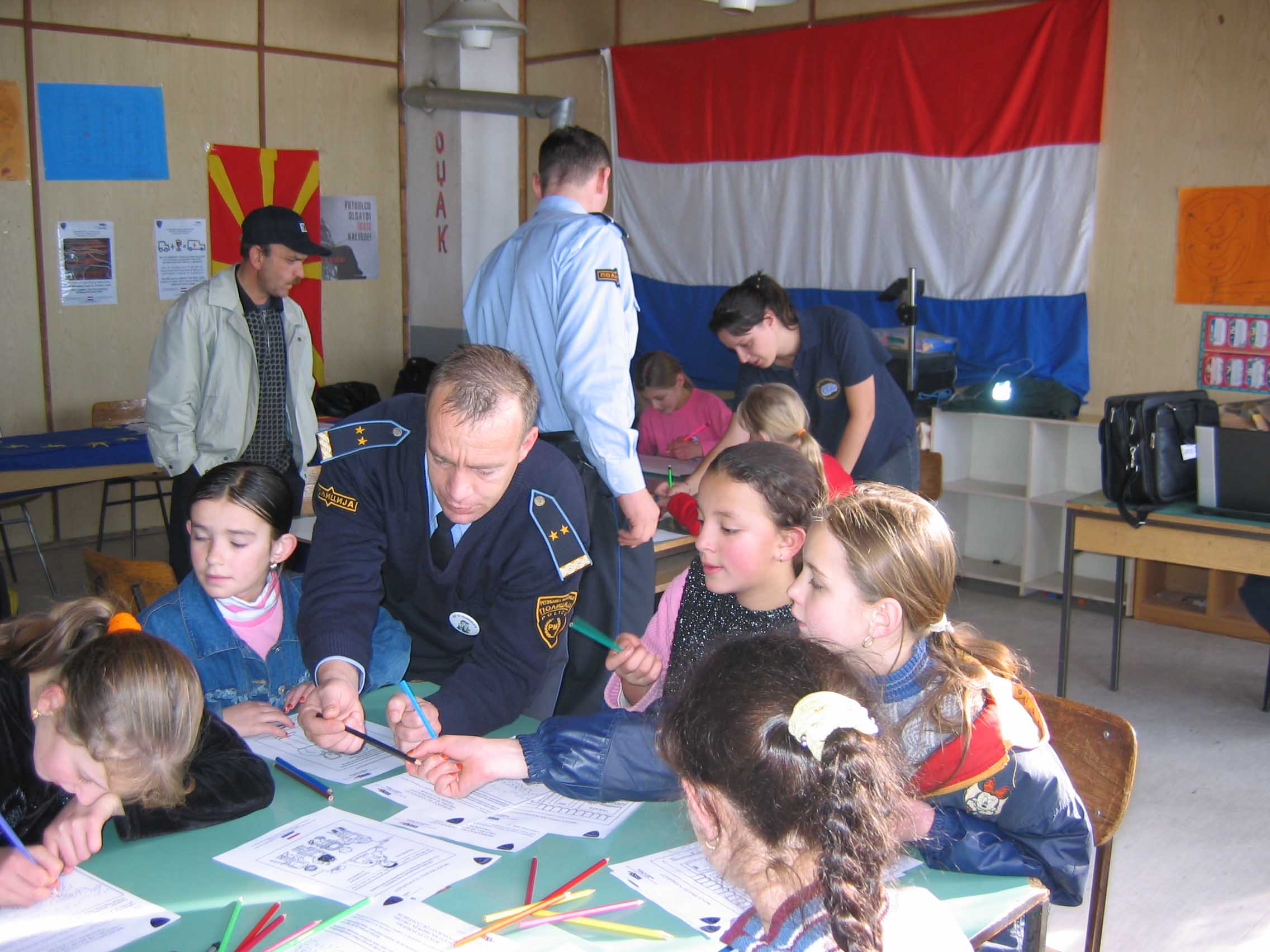 Children in Brostica primary school learn about safety from police officers as part of an initiative by Skopje's Ministry of Interior, supported by the OSCE, 9 December 2004