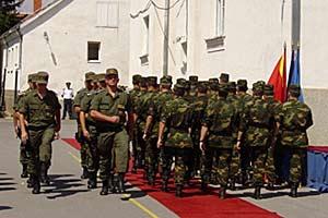 The army retreats as the border police step forward to assume control of the country's borders, 30 August 2005.