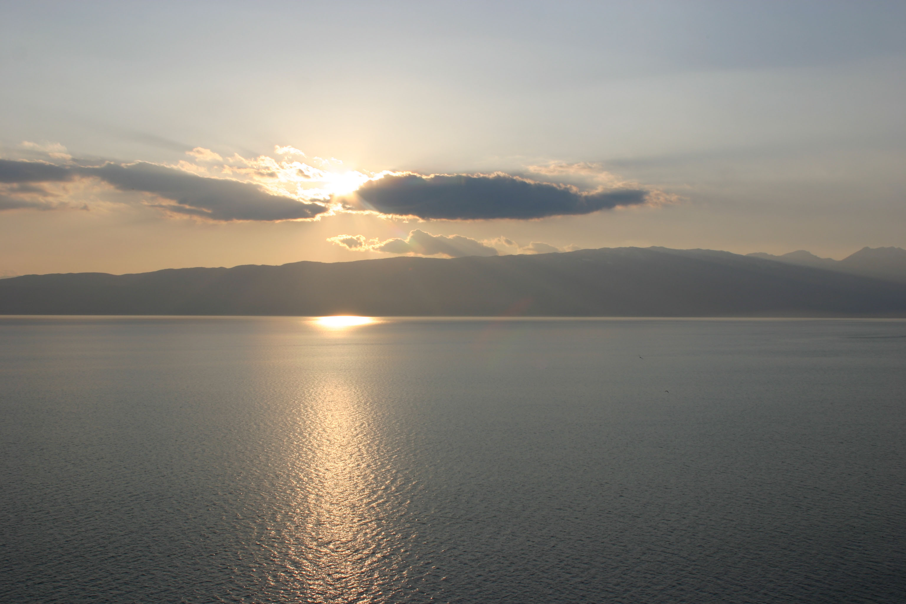 Sunset over Lake Prespa in the former Yugoslav Republic of Macedonia, 14 April 2006.