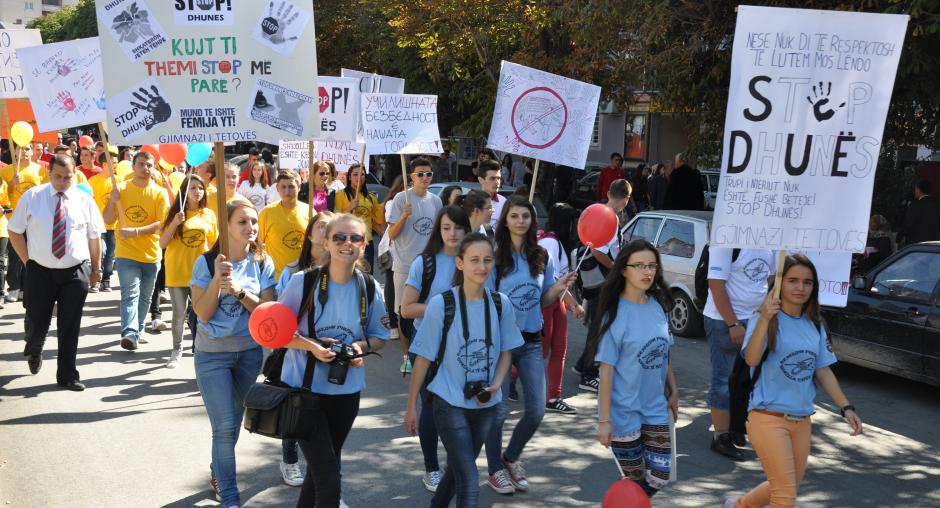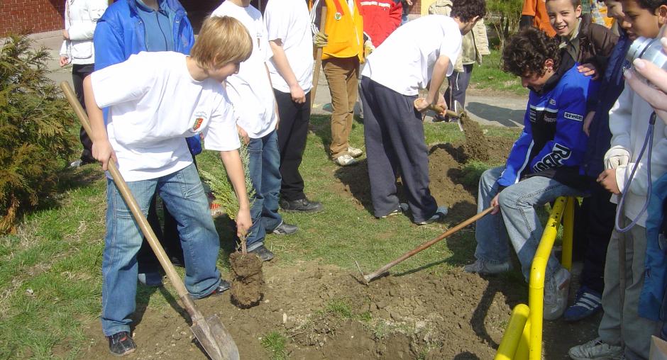School children take part in an environmental awareness-raising event organized by Gjorce Petrov municipality in Skopje with the OSCE, Gjorce Petrov Police Station, the Ministry of Ecology and Urban Planning and others, 21 March 2006. (OSCE)